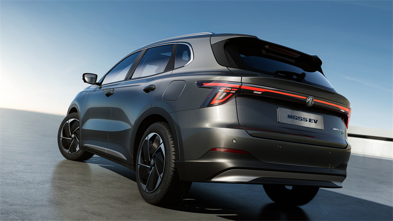 在设计上,MGS5 EV延续MG的家族化语言,前脸搭配LED大灯与“赛车旗帜式日间行车灯(DRL)”,尾部采用拱形尾灯(Arch Taillights),造型现代且极具辨识度。