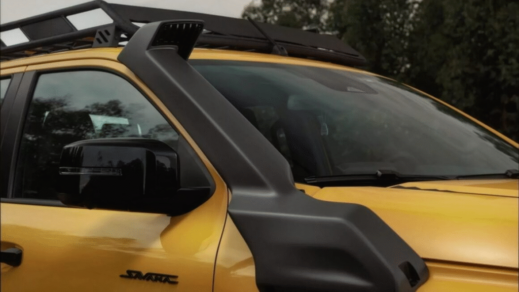 轮圈方面使用 18 吋亮黑铝圈并搭配全地形胎,让车辆能够轻松应付砂石与泥地。车侧加装宽大的踏板、车顶行李架以及独特的“呼吸管”(Snorkel),让涉水能力大幅提升,从原本 500mm 增加至 800mm,这对爱玩越野、穿越溪流或雨季地区的驾驶者来说,是非常实用的升级。整体来看,Triton Savana 拥有大量原厂越野装配,让它不像一般改装车,而是自出厂便具备强烈“探险 DNA”的专业皮卡。