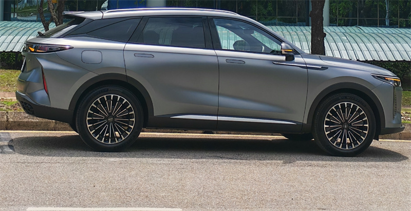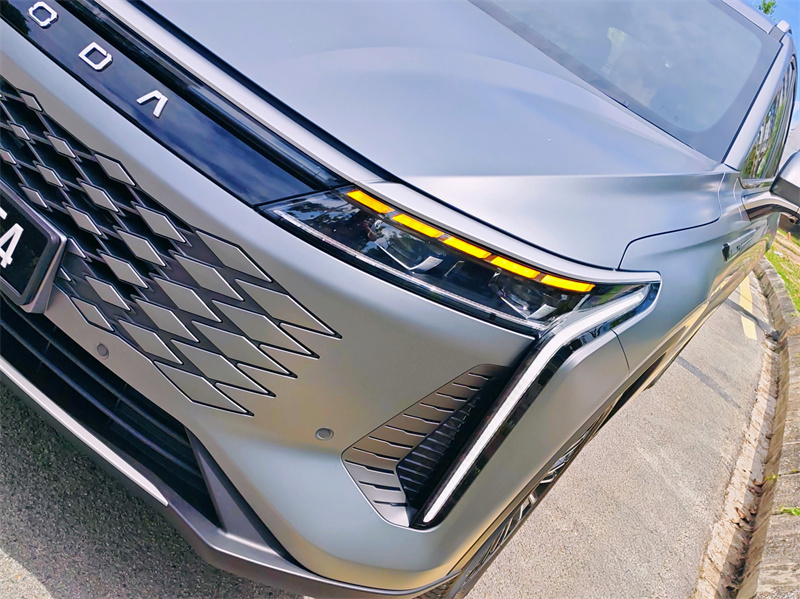 初次见到 Omoda C9 AWD ,那一刻我有点愣神。这台 SUV 的外观并不急于向你炫耀什么,而是以一种极具张力的克制感立在眼前。消光灰的车漆低调却不失霸气,光线下折射出一种磨砂金属般的质感。相比常见的黑白配色,它更像是一件带有“战甲气息”的都市艺术品——你不会觉得浮夸,却会被那份独特气场吸引。