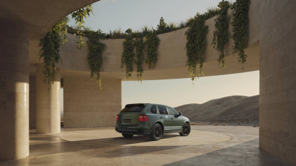 这辆 Cayenne 在送进工厂前,已经行驶了超过 80,000 公里,看似普通,却因为车主希望驾驶它穿越中东“鲁卜哈利沙漠”(Rub’ al Khali),并拖曳一辆美式复古露营拖车,使它成为 Sonderwunsch 专案的主角。车主希望它既能致敬经典 Porsche 的复古元素,又能拥有足够越野能力去面对沙漠严苛环境,这也奠定了整个改造方向。