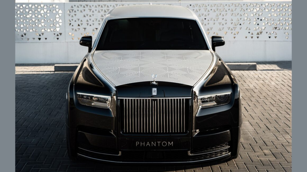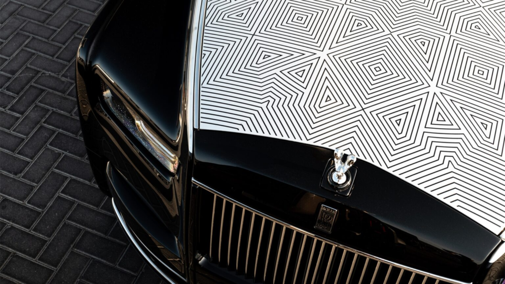 Phantom Arabesque 的设计核心,源自中东建筑中常见的 Mashrabiya 木格窗花。这种几何图腾兼具遮阳与装饰功能,在光线穿透时会形成层次丰富的光影效果。设计团队并没有简单复制图案,而是将其解构、重组,再转化为符合当代豪华车审美的立体语言。尤其在引擎盖部分,这种纹样被重新诠释为细腻而富有深度的雕刻纹理,成为整车最具标志性的视觉焦点。