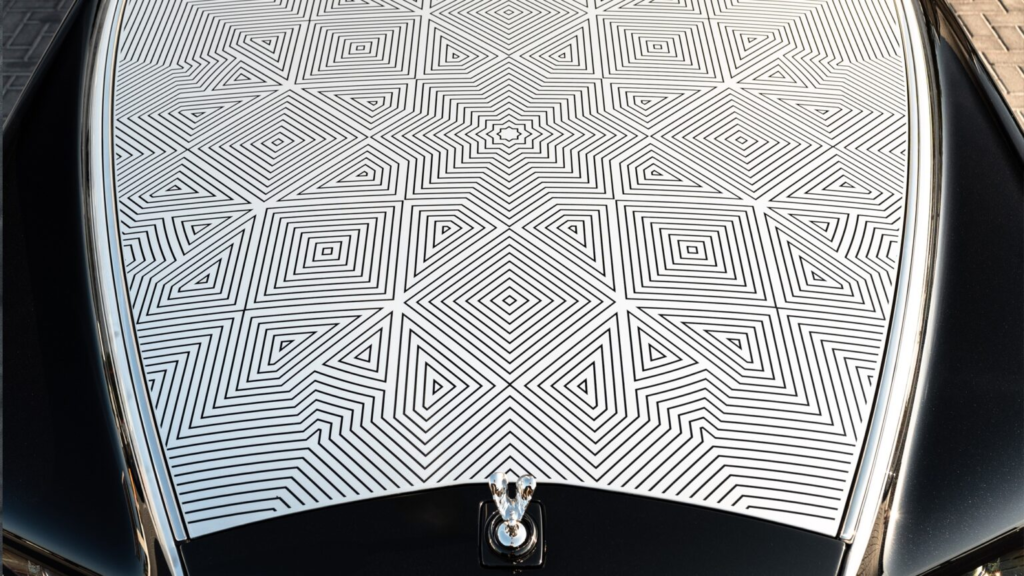 为了实现这一复杂效果,Rolls-Royce 花费了约五年时间进行技术攻关。工程团队研发出专属的雷射雕刻工艺,将精度控制在极其微细的范围内,使金属表面呈现出多层次的纹理变化。不同角度下,阳光会在雕刻线条之间反射与折射,产生流动般的光影效果。更值得一提的是,这套工艺已获得专利认证,象征品牌在 Bespoke 客制化领域再次突破传统制造边界。