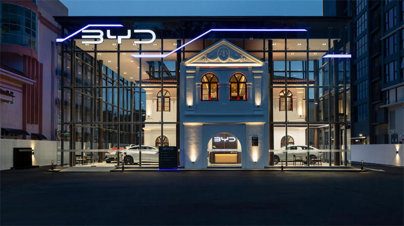 BYD Mansion Macalister 占地约 26,994 平方英尺,其中建筑面积约 9,000 平方英尺。与传统汽车展厅不同,该空间采用精品展厅概念设计,更像一个结合艺术与科技的汽车展示空间。展厅内目前展示 四辆精选 BYD 电动车,每辆车都以类似艺术品展示的方式呈现,让访客在轻松的环境中近距离欣赏车辆设计与科技。