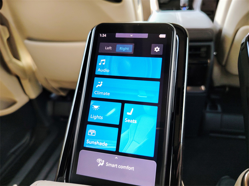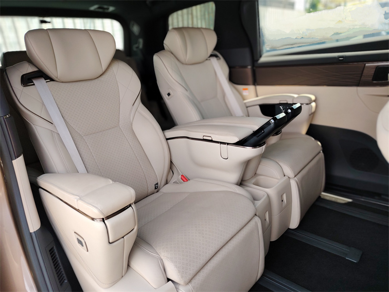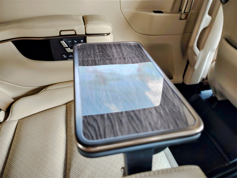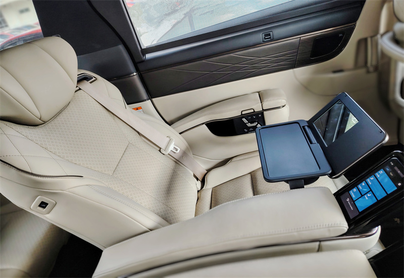 车内还配备了智能遥控系统,乘客可以通过座椅旁的触控面板对车内的灯光、座椅调节、空调等进行个性化调整。无论是灯光氛围、座椅的倾斜角度,还是空调的温度调节,乘客都能轻松掌控。独特的旋转式小桌板设计也为乘客提供了工作、餐饮或娱乐的便利空间,进一步提升了车辆的实用性。