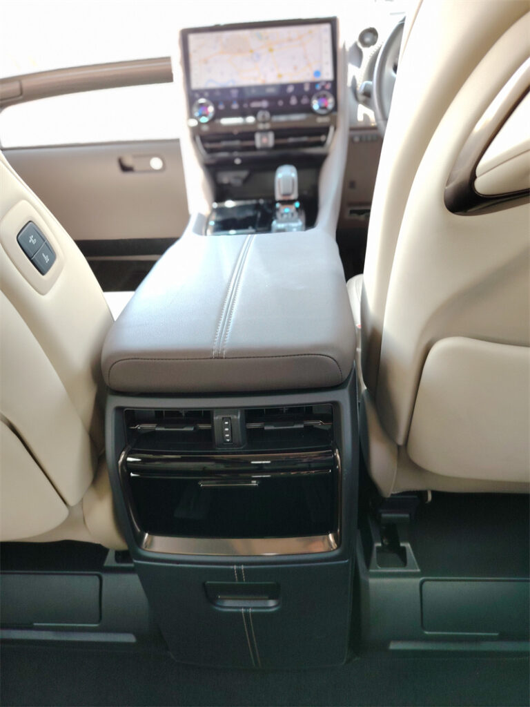 Alphard 2.4L Turbo 的内饰堪称“豪华移动头等舱”。车内采用了高级Nappa真皮座椅和木纹饰板,搭配精致的缝线和镀铬装饰,营造出极为奢华的氛围。座椅不仅柔软舒适,还具备座椅加热、通风和按摩功能。其座椅框架还特别设计了防震结构,进一步提升了乘坐舒适性,尤其是在长途旅行中,乘客能享受到无与伦比的舒适体验。