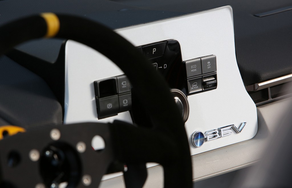 方向盘造型源自丰田Gazoo Racing赛车部门,具备独立的动力输出与能量回收模式调节按钮,让驾驶者可根据赛道情况即时切换电机响应方式。这样的设置让这辆bZ Time Attack Concept更像是一台专业赛车,而非概念展览车。