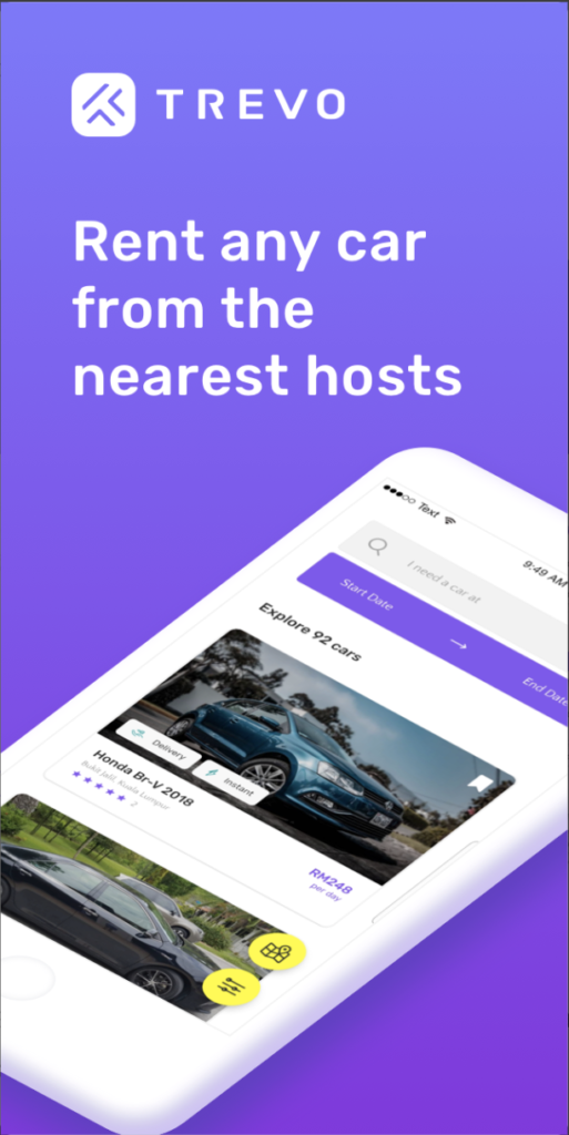 有了TREVO,客户便能以最低RM55来租用一辆Perodua Myvi一天。如果想升级至奢华体验,也可以租一辆劳斯莱斯。客户可以选择小型汽车、掀背车(hatchback)、轿车(sedan)、双门汽车(coupe)、运动休旅车(SUV)或四轮驱动车。