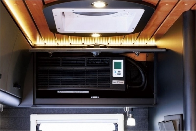 值得一提的是,这款车配备完整的生活设备——微型冰箱、感应式水槽、抽风系统、USB与AC插座一应俱全。车顶安装 60W 太阳能板,可在旅途中为电池充电,确保照明与电器持续运作。电控面板能监控电量与水箱状态,让用户实时掌握车内能源使用状况。后方还设有一台 DC12V 冷气机,可运作约 7 小时,即使在马来西亚热带气候中露营,也能保持清凉舒适。