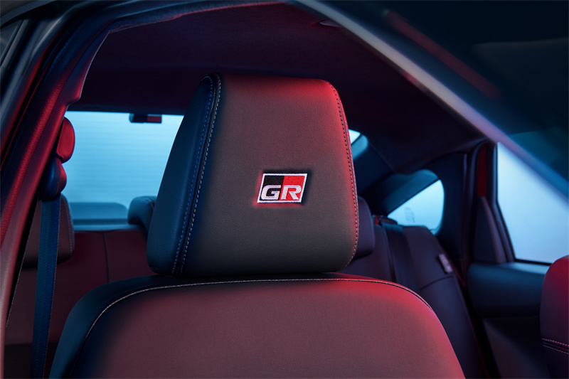GR 专属空气动力套件、黑化饰件与标识,搭配 GR 调校悬挂系统与电子转向辅助,提升高速稳定性与弯道表现。车内则配备 麂皮与皮革混合座椅、红色缝线、GR 方向盘与脚垫,营造更浓厚的运动氛围。