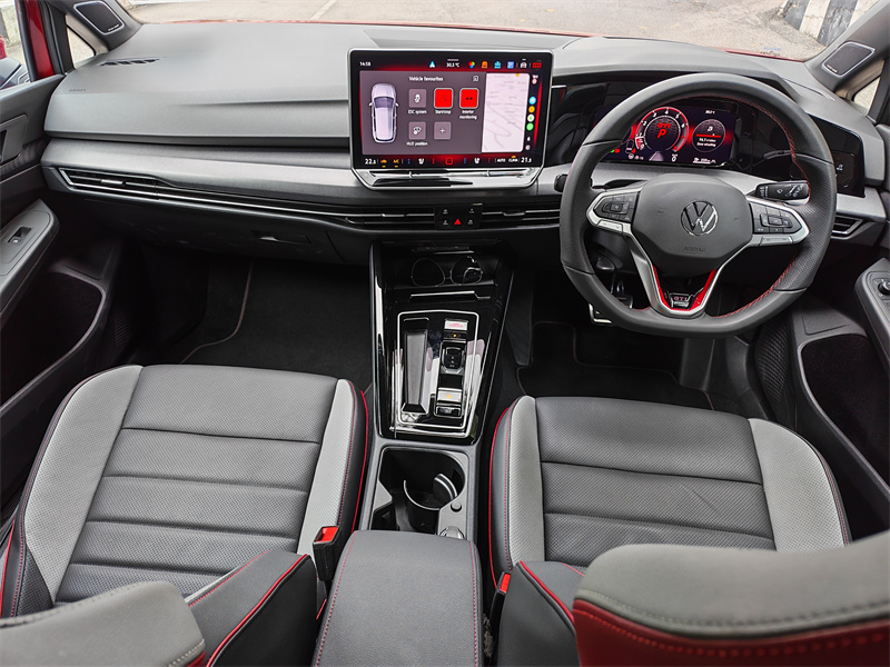 运动座椅依旧提供优秀的包覆性与支撑,长时间驾驶不会感到疲劳。红色缝线、GTI 专属标识恰到好处,不浮夸,但很有仪式感。